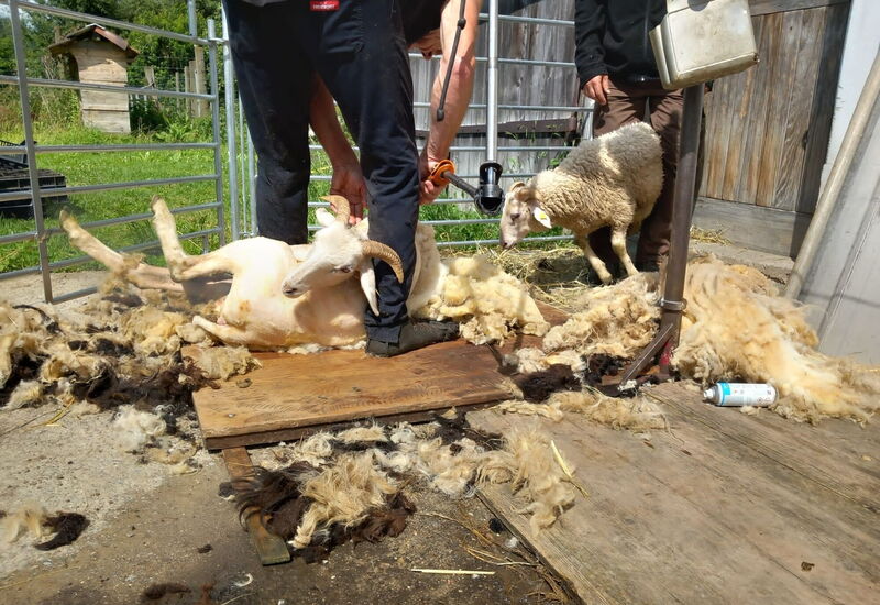 Wo zuvor Maschinen und Menschen ihr Tagewerk zur Landschaftspflege verrichteten, grasen nun zufrieden Schafe. Fussgänger und Anwohner freuen sich, Stadt und Land gibt sich die Hand. Mit unseren zwei ProSpezieRara Schafrassen, den Skudden und Bündner Oberländer Schafen, beweiden wir neu im Auftrag der Stadt Winterthur extensiv genutzte Blumenwiesen. Die Biodiversität wird dadurch gesteigert, der CO2- Fussabdruck der Stadt Winterthur etwas gesenkt. Einmal im Jahr werden die Schafe geschoren, mit der Wolle der BOS stellen wir veggie- Felle her, diese sind natürlich schön, robust, warm und können gewaschen werden. Mit der Wolle der Skudden weben wir rustikale Sitzteppiche. Einzelne Tiere werden regional geschlachtet und nach den Richtlinien von Demeter verarbeitet. Unser kleines aber feines Sortiment an Fleisch verkaufen wir am Marktstand, die Felle, wie auch die veggie-Felle und Sitzteppiche auf Anfrage.